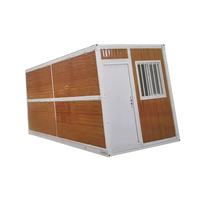 The foldable container house is a detachable container which can be quickly erected and easily relocated. The prefab house is modular which is based on steel structure frame and sandwich wall panel. The house can be flat folded. After folding, the thickness of container house is 45cm, which is convenient for transportation. A container can fit in 10 units of the folded container houses. So the cost for transportation is low. The whole